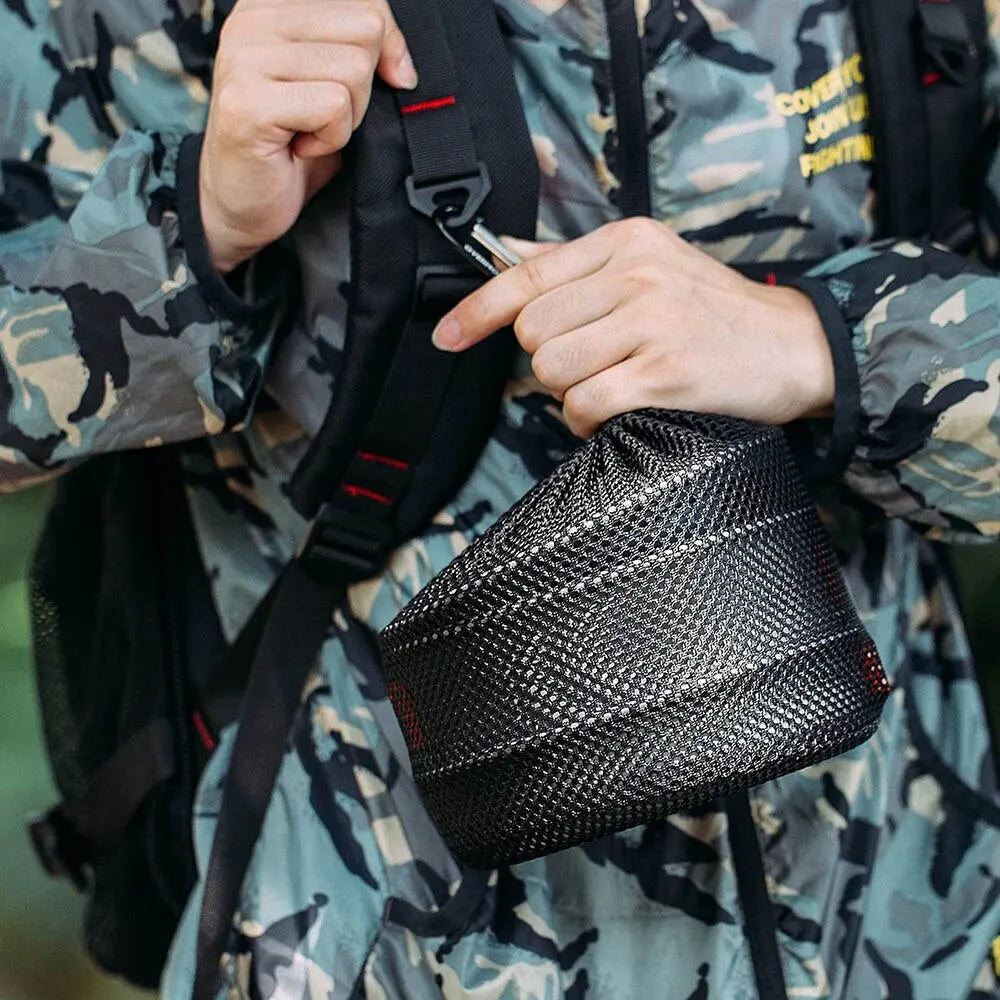 - Foldable Design: The stove and pot handle can be folded to save space, and all items can be stored together in the net bag for easy carrying.