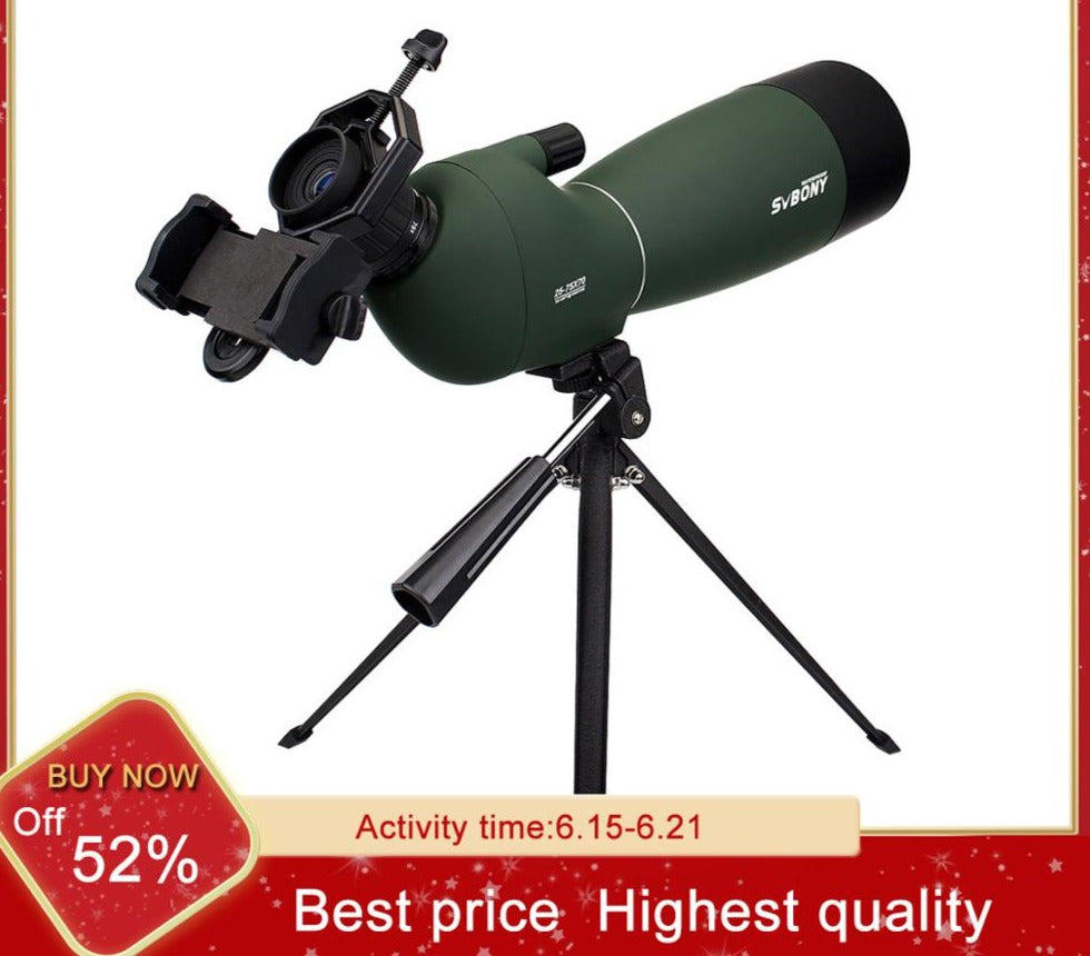Explore the outdoors and capture stunning sights with the SVBONY SV-28 Series Zoom Spotting Scope and its included standard tripod - your gateway to a world of captivating observation.